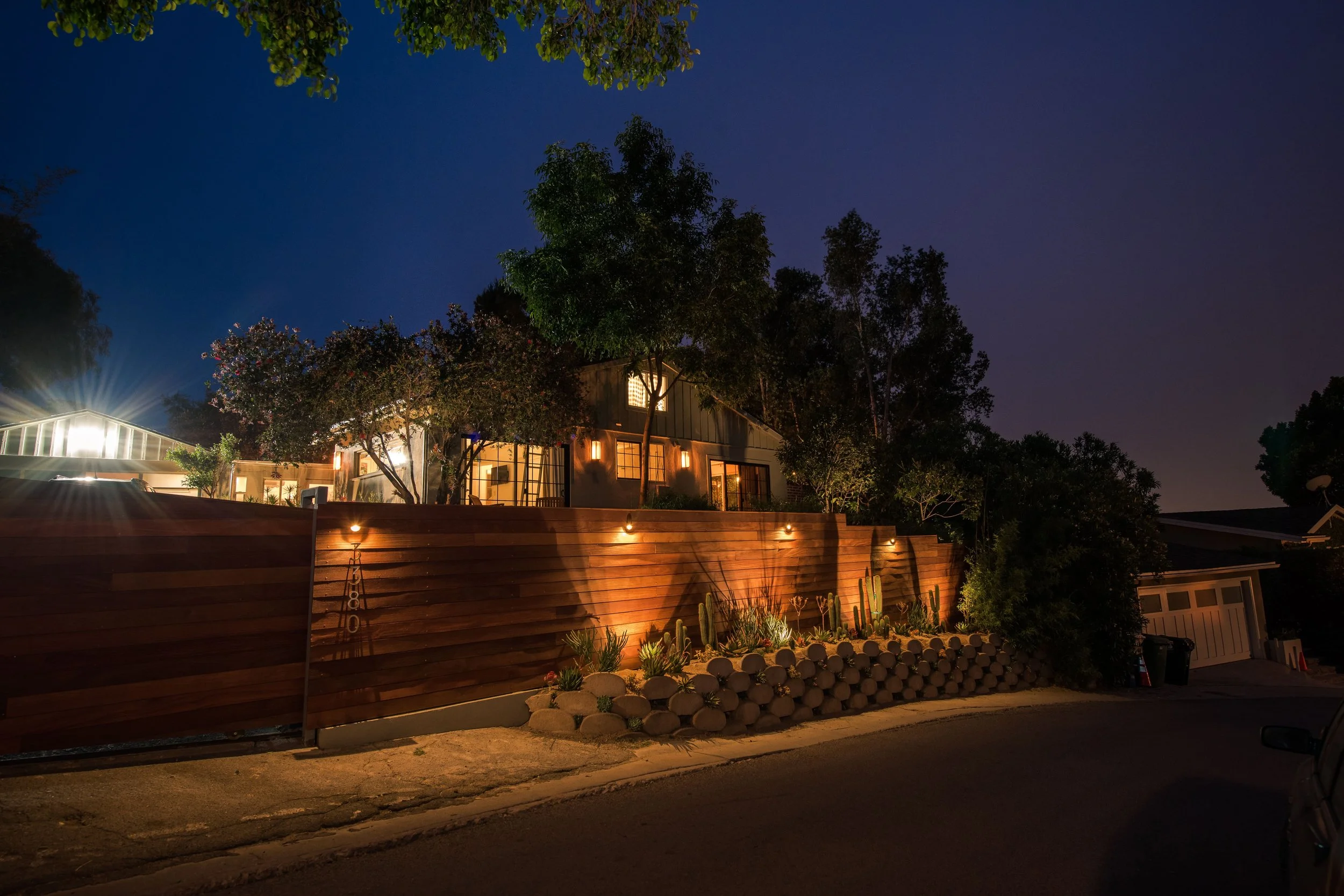 Around the house there are a wealth of areas to sit and enjoy the enormous views and wildlife of the park. There is a large lower deck set out as an outdoor living room, with sensational 180 degree views of the Griffith Park Observatory and the high rises of DTLA. The entire property is lit beautifully at night and festoon lights swag over the pool and outdoor dining area.